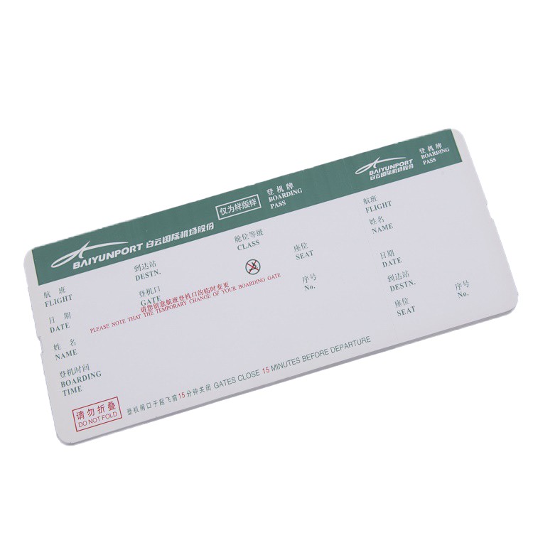 मुद्रण उद्योगात 30 वर्षांचा अनुभव असणारी चिनी निर्माता म्हणून, गुआंग्डोंग-हाँगकाँग (जीझेड) स्मार्ट प्रिंटिंग कंपनी उच्च-कार्यक्षमता बोर्डिंग पास तिकिटे प्रदान करते जे जागतिक विमानचालन उद्योगाला आयएटीए मानकांची पूर्तता करतात. आमच्या उत्पादनांनी आयएसओ 9001 क्वालिटी मॅनेजमेंट सिस्टमचे प्रमाणपत्र उत्तीर्ण केले आहे आणि दर वर्षी 60+ देशांमधील विमानतळांना 200 दशलक्षाहून अधिक हवाई तिकिटे दिली आहेत.